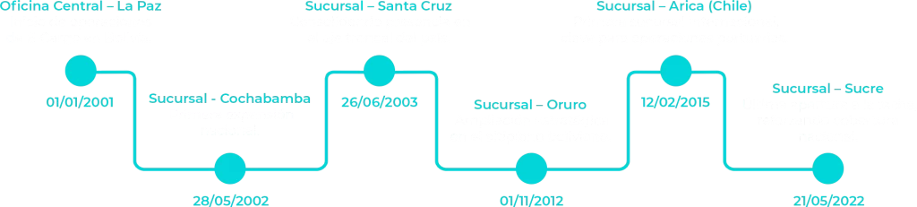 E-Cargo Overseas Group, se estableció en La Paz, Bolivia, el 10 de septiembre de 2001, y cuenta con sucursales en las principales ciudades del país y dos sucursales propias en Chile. Nos destacamos como el único forwarder boliviano que opera de manera independiente desde Chile, lo que simplifica los procesos para nuestros clientes. Ofrecemos servicios de transporte internacional y logística de alta calidad, respaldados por un personal que cuenta con más de 15 años de experiencia. Además, colaboramos estrechamente con algunos de los socios más importantes a nivel mundial en cuanto a agentes y transportistas.